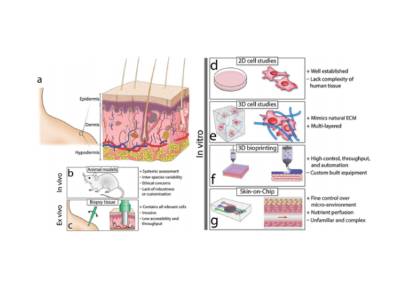 皮肤芯片模型通常由多种细胞类型组成,包括角质形成细胞、成纤维细胞、内皮细胞等,以模拟皮肤的多层结构和功能。近年来,诱导多能干细胞(iPSC)的应用进一步提升了皮肤芯片的生理相关性,使其更接近人体真实皮肤。皮肤芯片广泛用于毒性测试、药物渗透研究、化妆品功效评估以及疾病建模等。