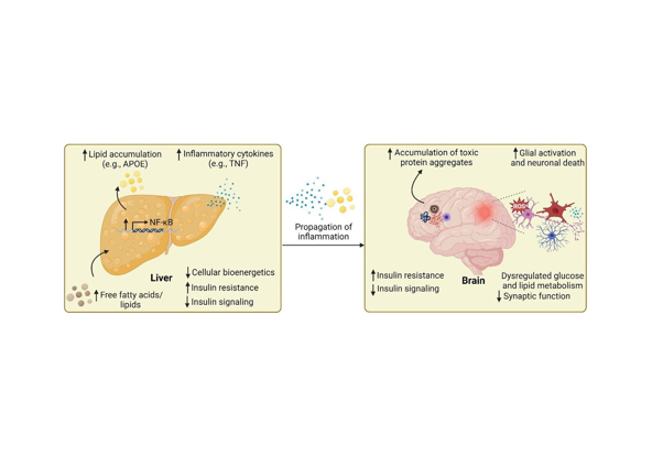 一方面,肝脏代谢异常(如氨蓄积、炎症因子过量释放)会损伤脑功能,引发认知障碍、情绪紊乱及其他神经相关表现。另一方面,中枢神经系统主要通过迷走神经调控肝脏代谢过程(如糖代谢、脂代谢),而慢性应激会破坏这一调控轴,进而加重肝脏损伤。肝 - 脑轴器官芯片作为能够再现肝 - 脑双向调控通路的仿生体外平台,为筛选和验证与肝性脑病、阿尔茨海默病及肝 - 脑功能异常相关代谢性疾病的药物靶点,提供了强有力的工具。